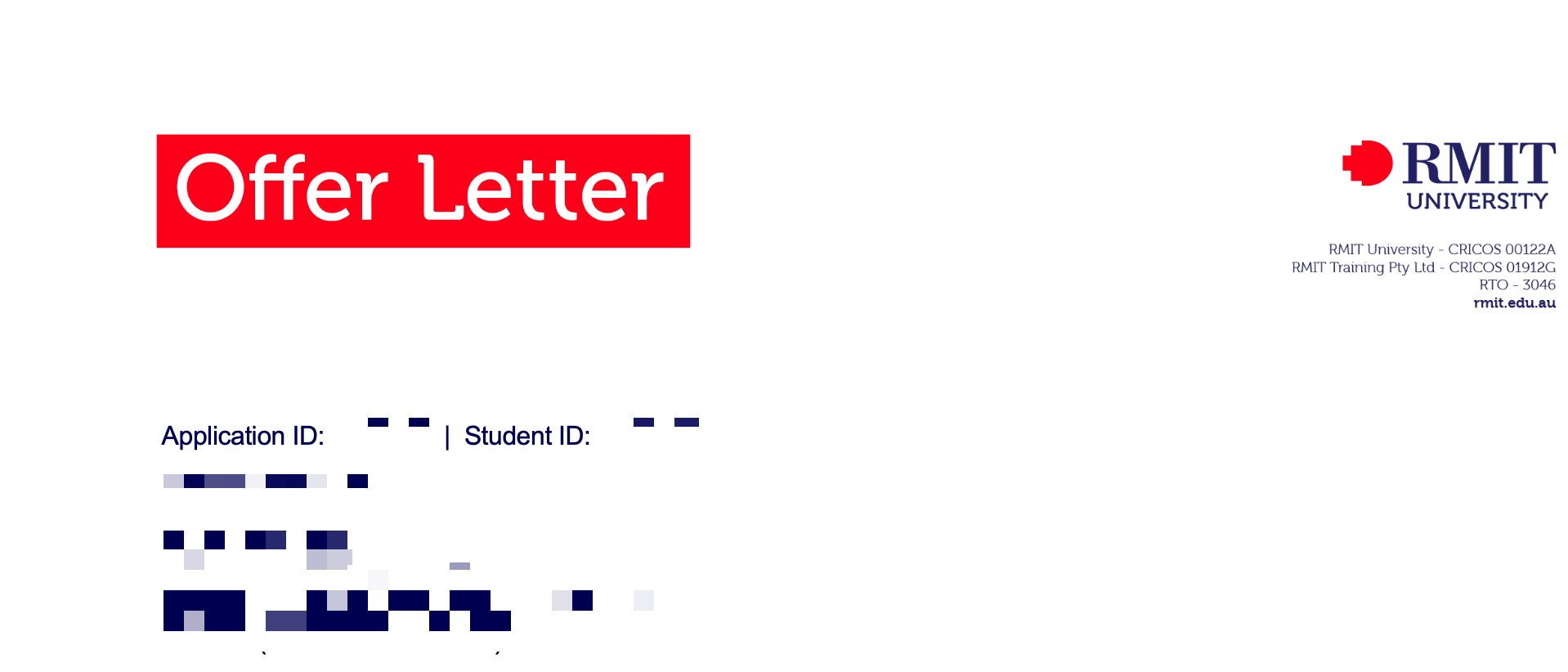 어플리케이션 폼을 작성한 후 기다리시면 RMIT로부터 Offer Letter를 받게 됩니다. 언제 작성했느냐에 따라서 Offer Letter를 받는 시간이 달라질 수 있을 것 같은데, 저의 경우 어플리케이션 폼 작성을 10월 25일에 완료하였고, Offer Letter를 11월 17일에 받았습니다.